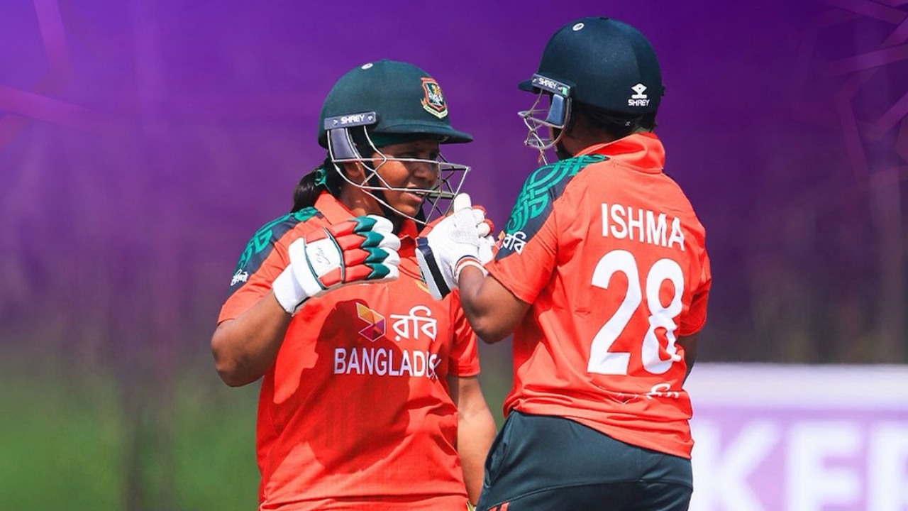 আগে ব্যাট করতে নেমে দারুণ শুরু পায় বাংলাদেশ। ১৯ বলে ১৭ রান করে শামিমা সুলতানা আউট হলে ভাঙে ৪৮ রানের উদ্বোধনী জুটি। আরেক ওপেনার ইশমা করেছেন ৩০ রান। তিনে নেমে শারমিন করেছেন ২৯ রান।
