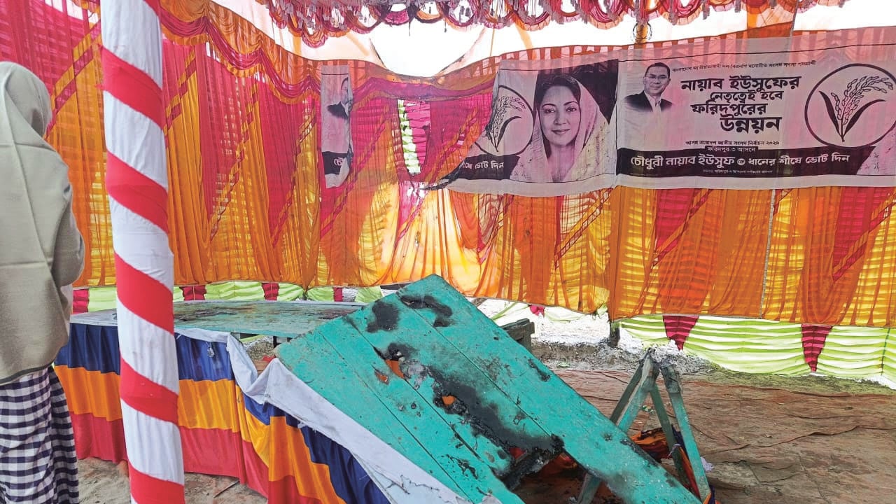 ফরিদপুর-৩ (সদর) আসনে বিএনপি প্রার্থী চৌধুরী নায়াব ইউসুফের নির্বাচনী প্রচারণা ক্যাম্পে দুর্বৃত্তরা আগুন দিয়েছে বলে অভিযোগ উঠেছে।